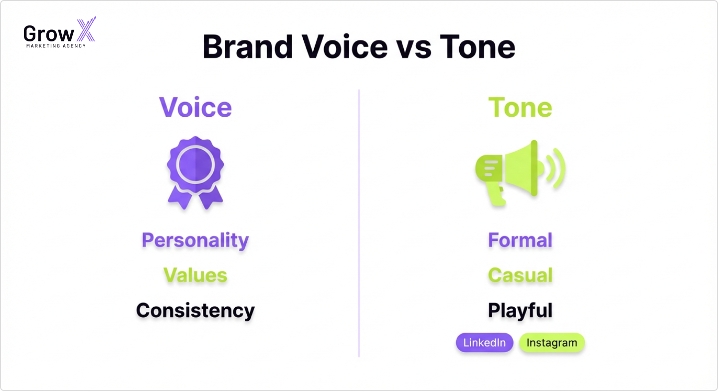 Voice is stable - tone is flexible. Tone may shift by context, audience, or platform, but the core personality stays intact.