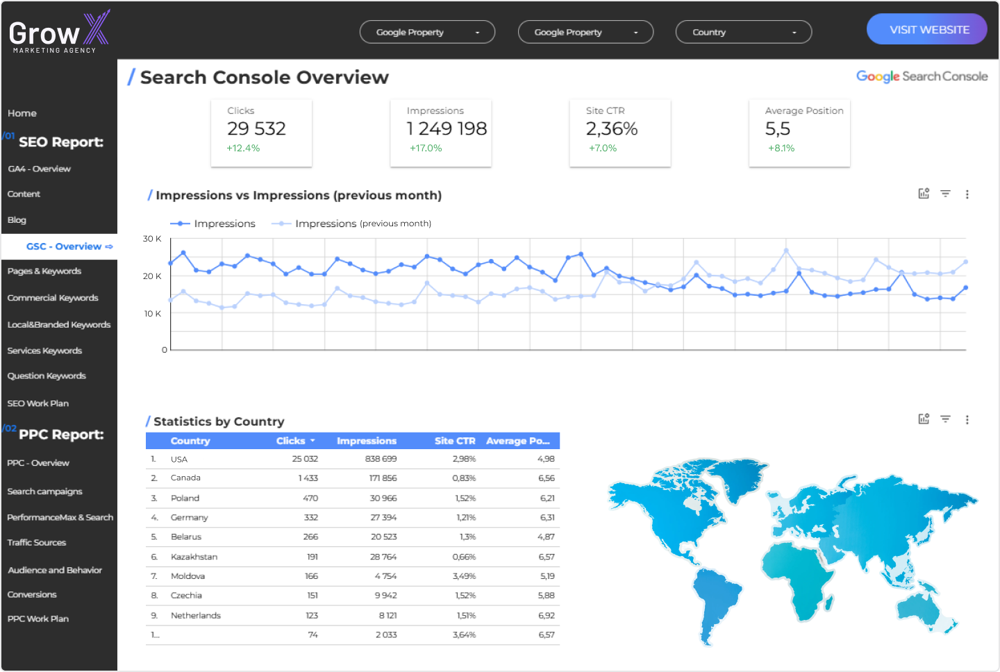 Grow X tracks all these metrics in Looker Studio and can set up a dashboard or provide independent monthly reporting.
