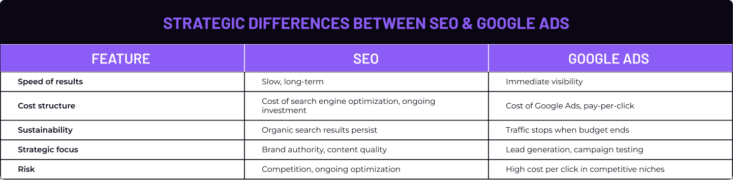 Strategic differences between SEO & Google Ads
